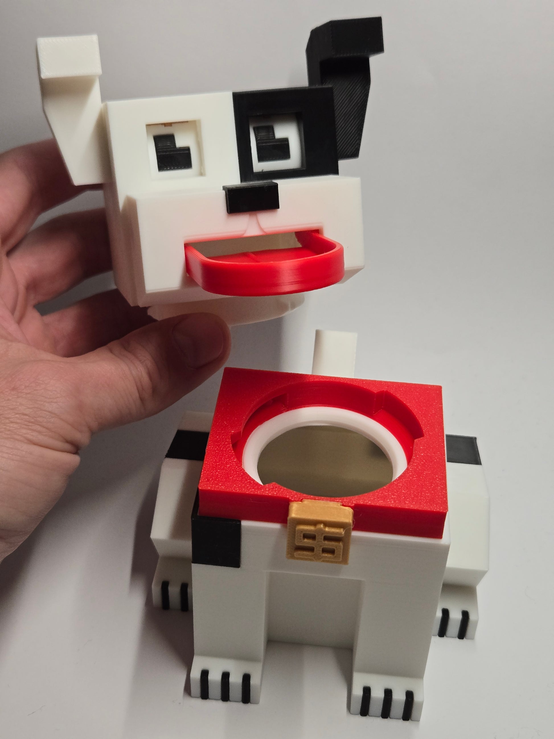 Krājkasei ir viegli noņemama galva, lai vari tik klāt pie saviem ietaupījumiem kad krājkase ir pilna.
